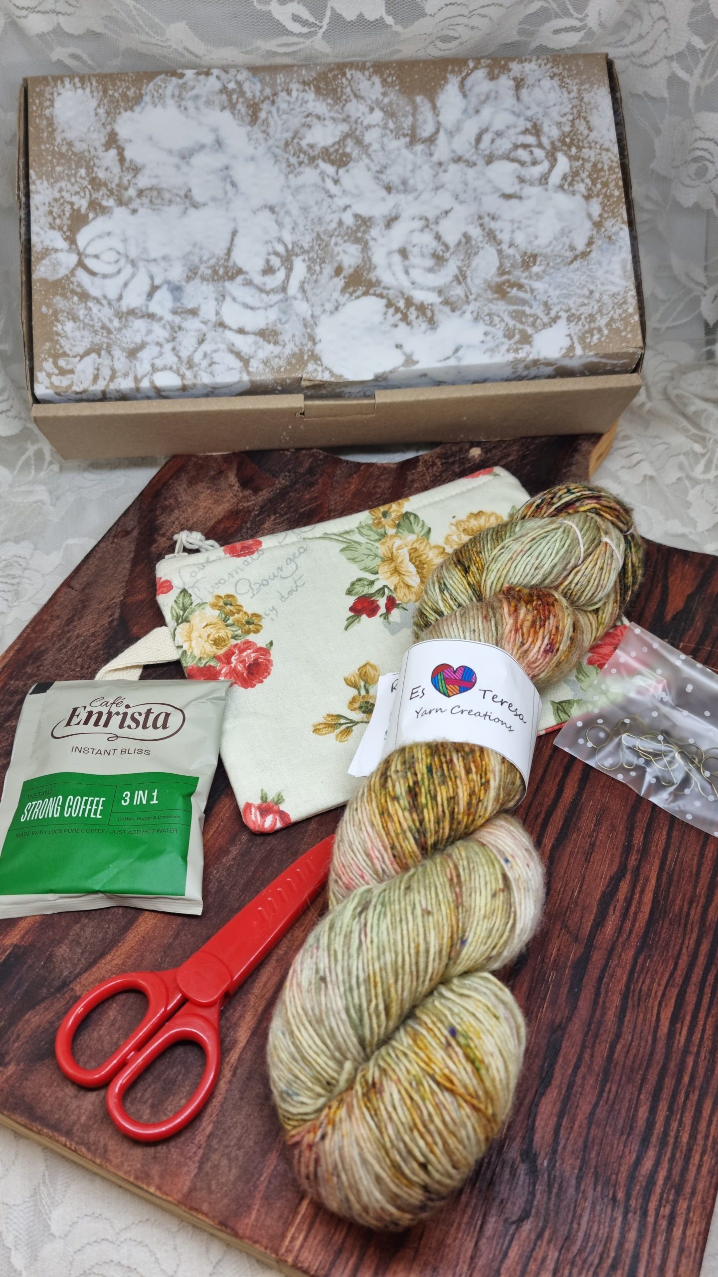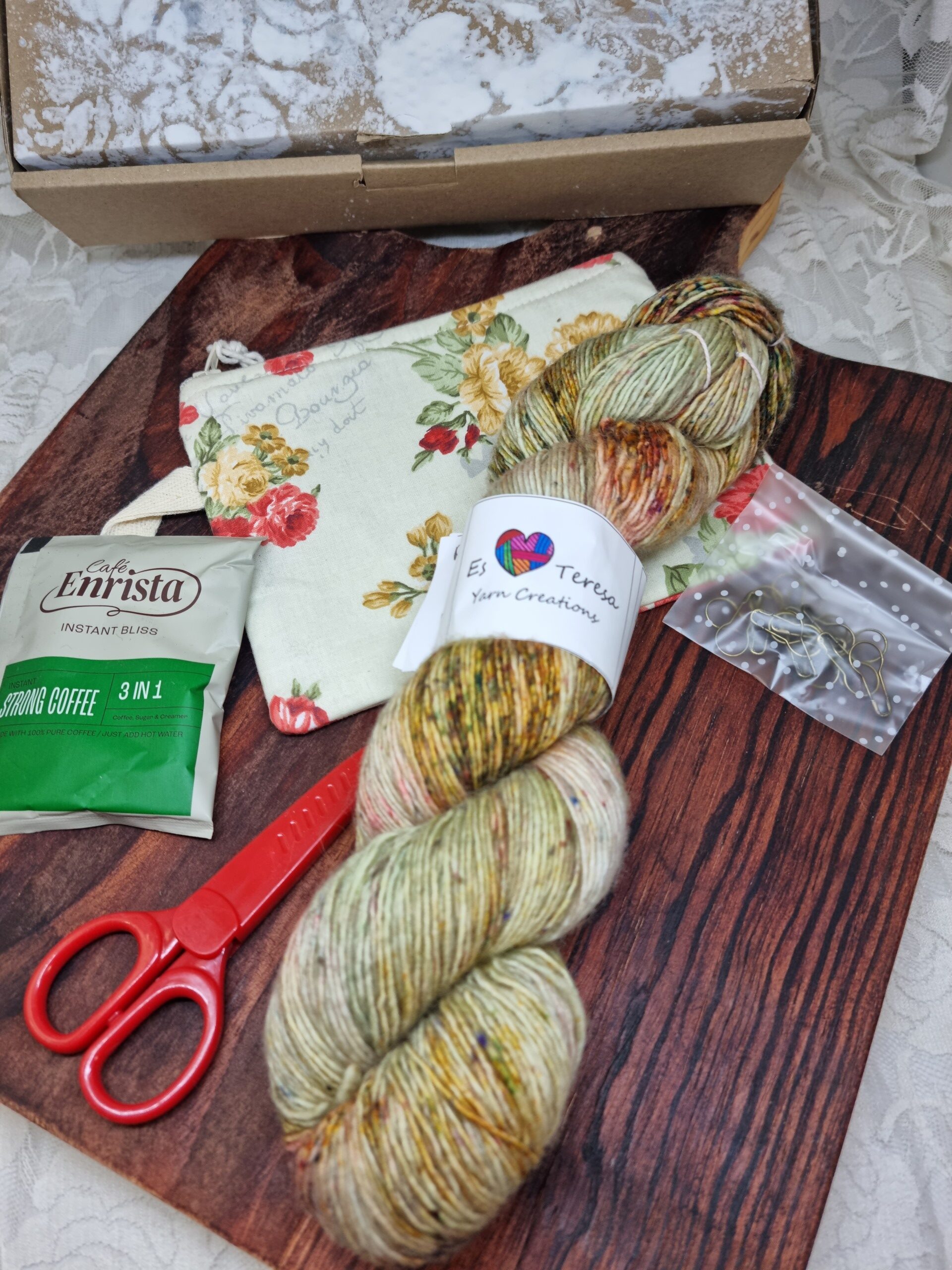 1 x 96g skein of yarn in our Athena yarn base (90% SW Merino, 10% Acrylic Nep, single ply, sock/fingering weight, 336m)