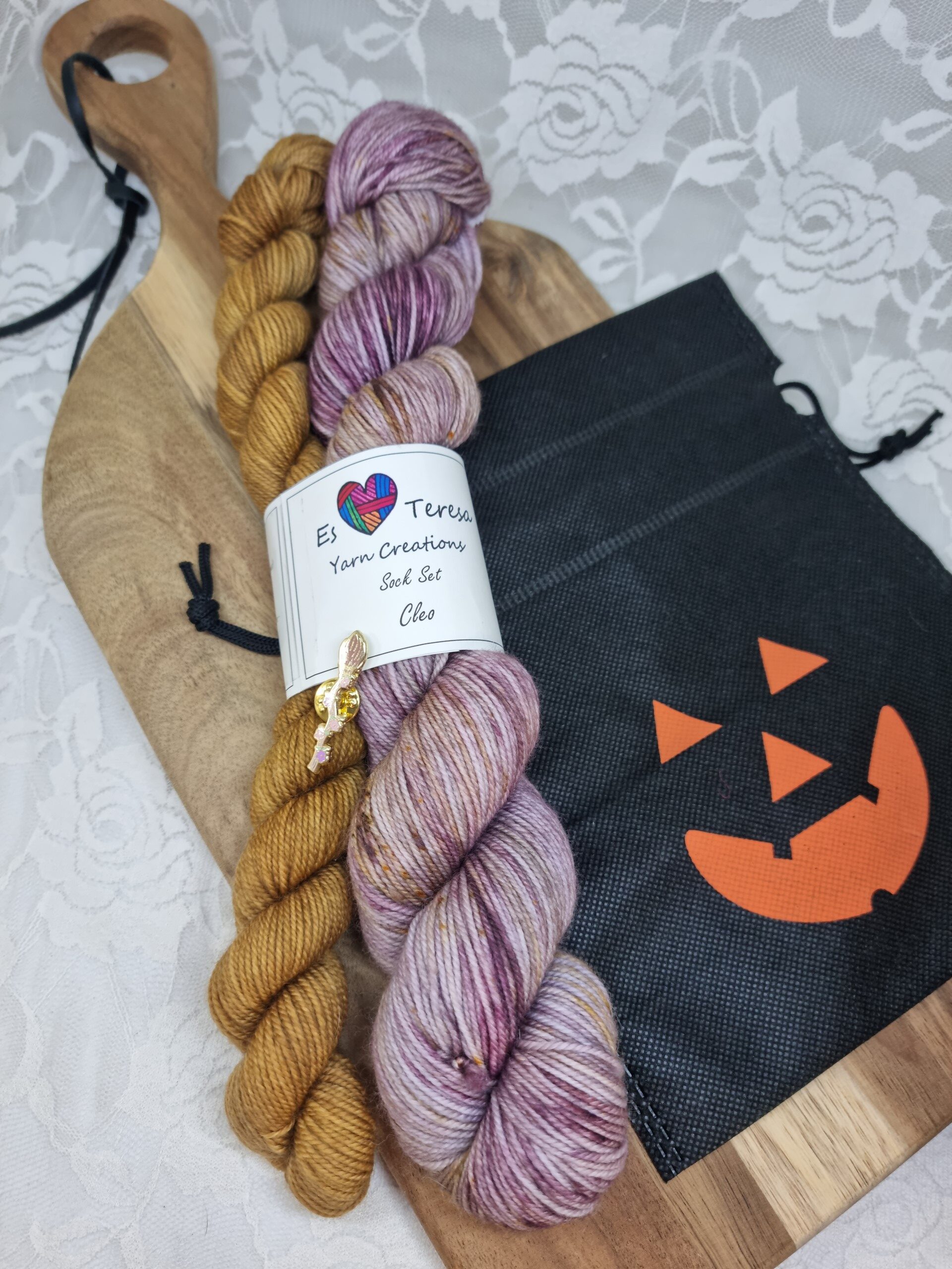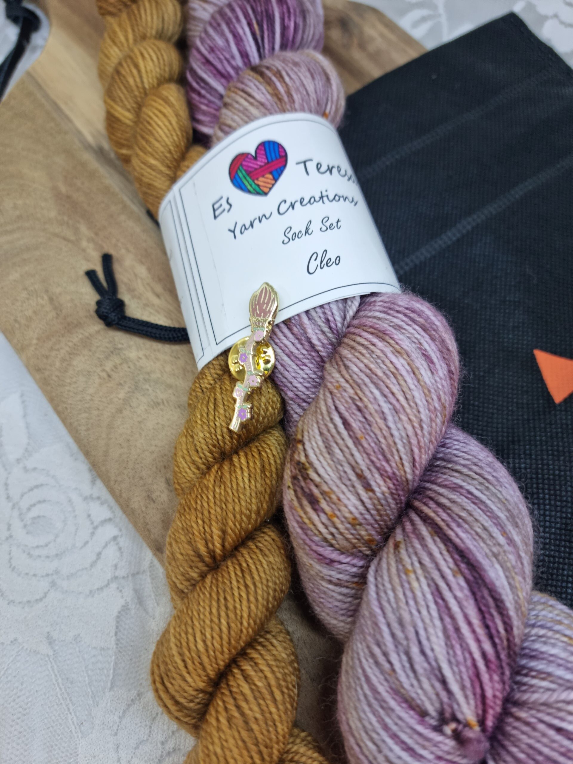 Each set includes a pin and is packed in a little drawstring bag.