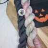 The sock set consists of 1 x 80g skein and 1 x 30g skein (in a contrasting colour for heels, cuffs and toes) = 110g in total.