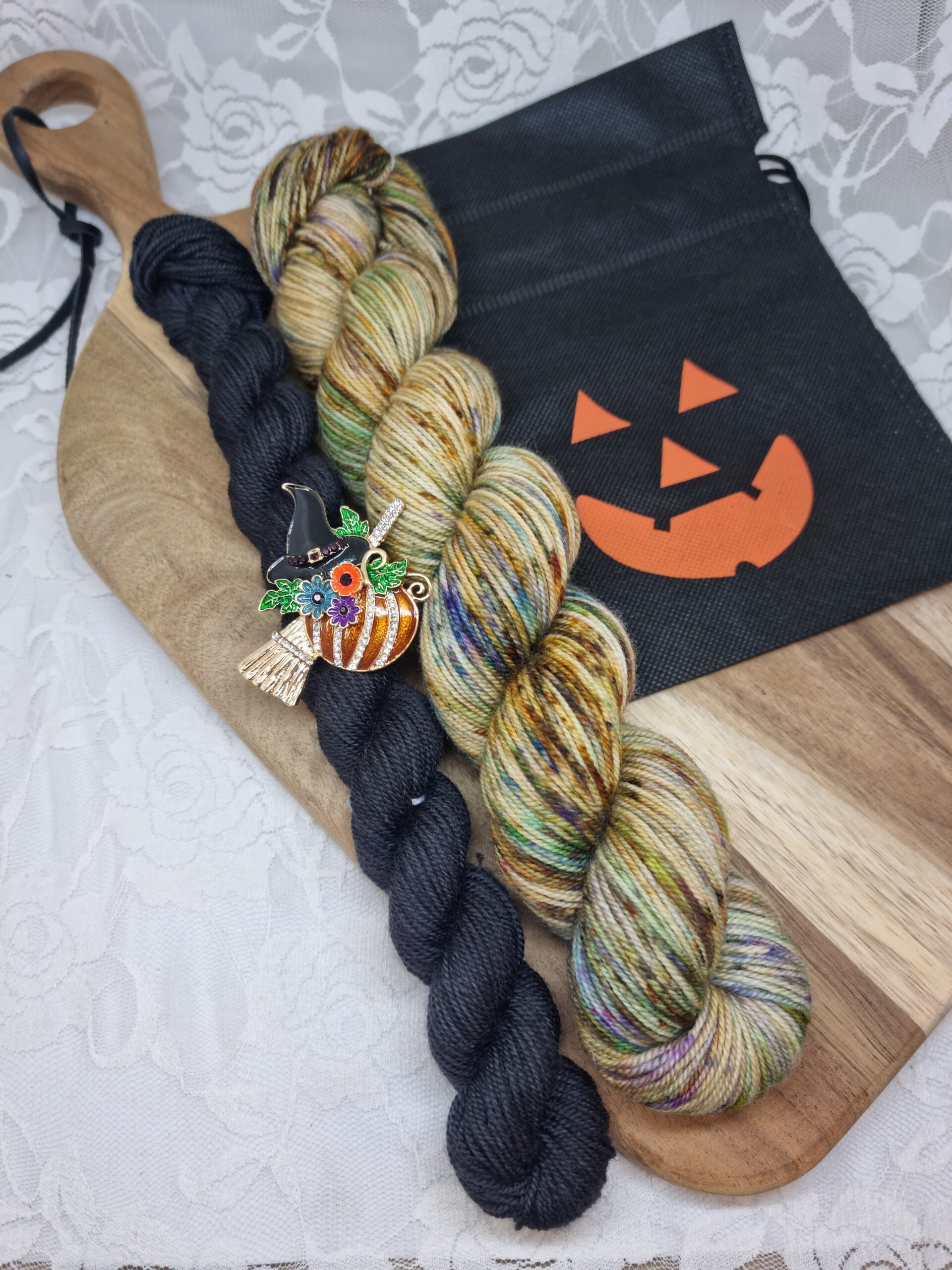 Each set includes a pin and is packed in a little drawstring bag.