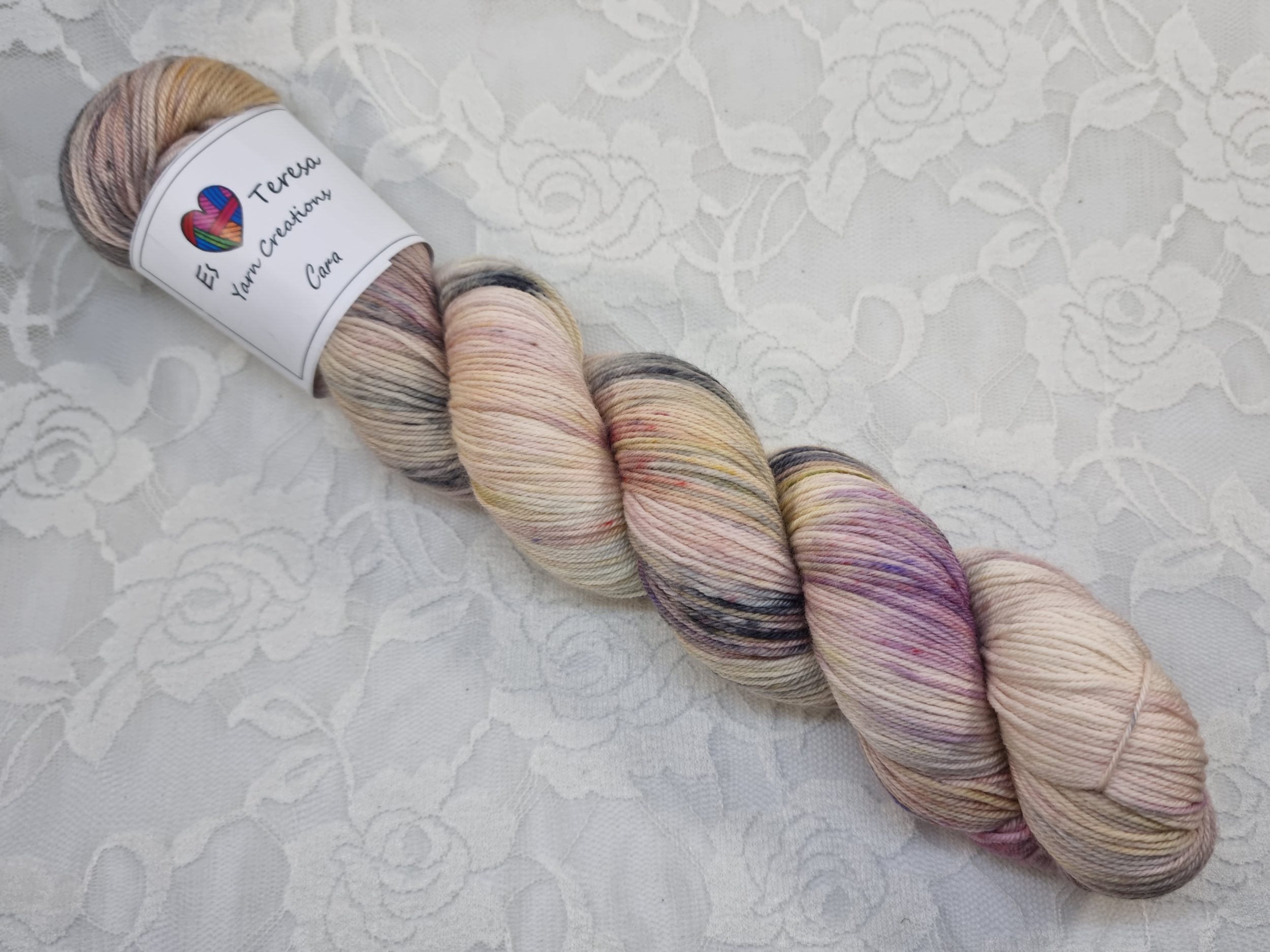 Each 100g skein of 4 ply sock/fingering weight yarn is about 400m.
