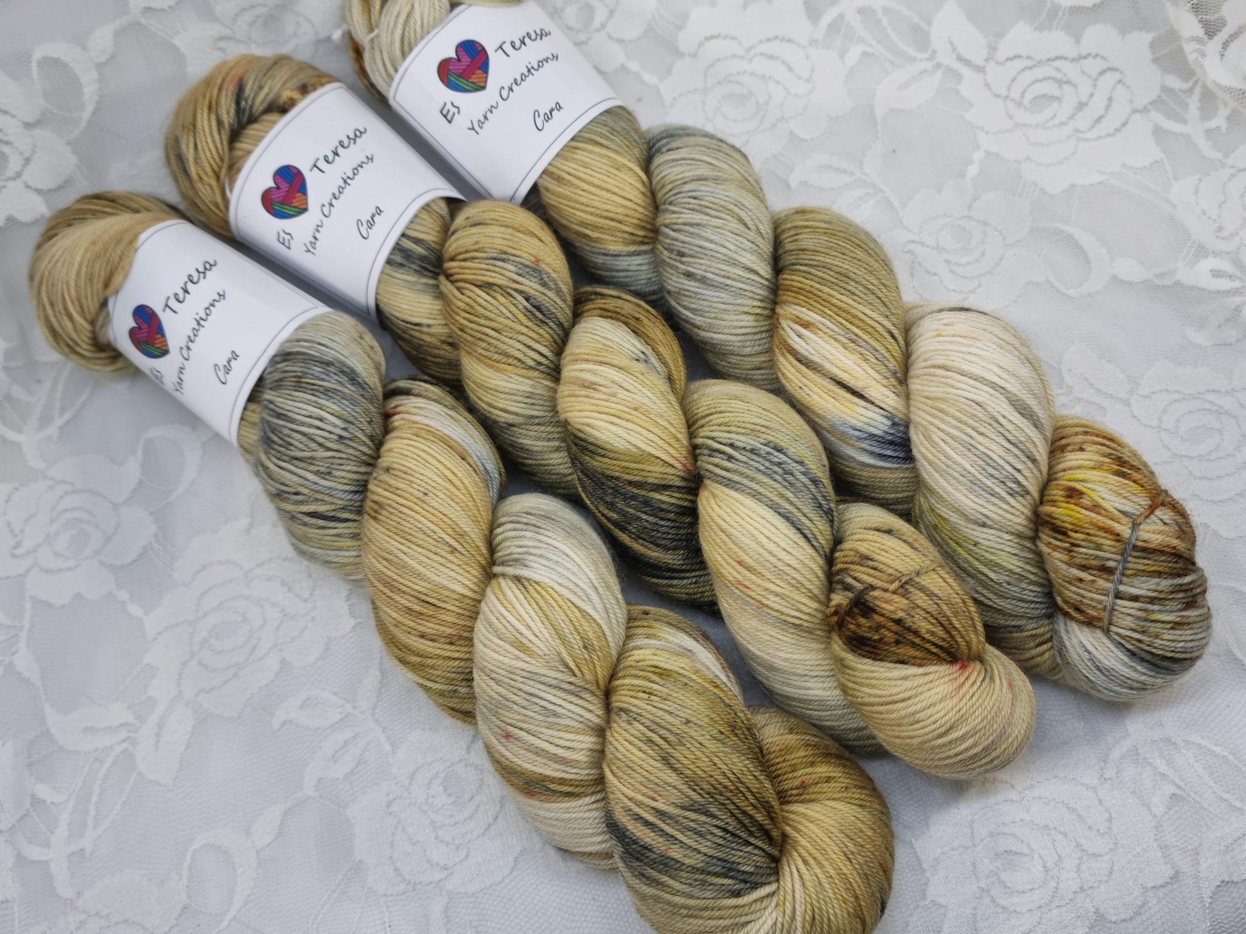 Each 100g skein of 4 ply sock/fingering weight yarn is about 400m.