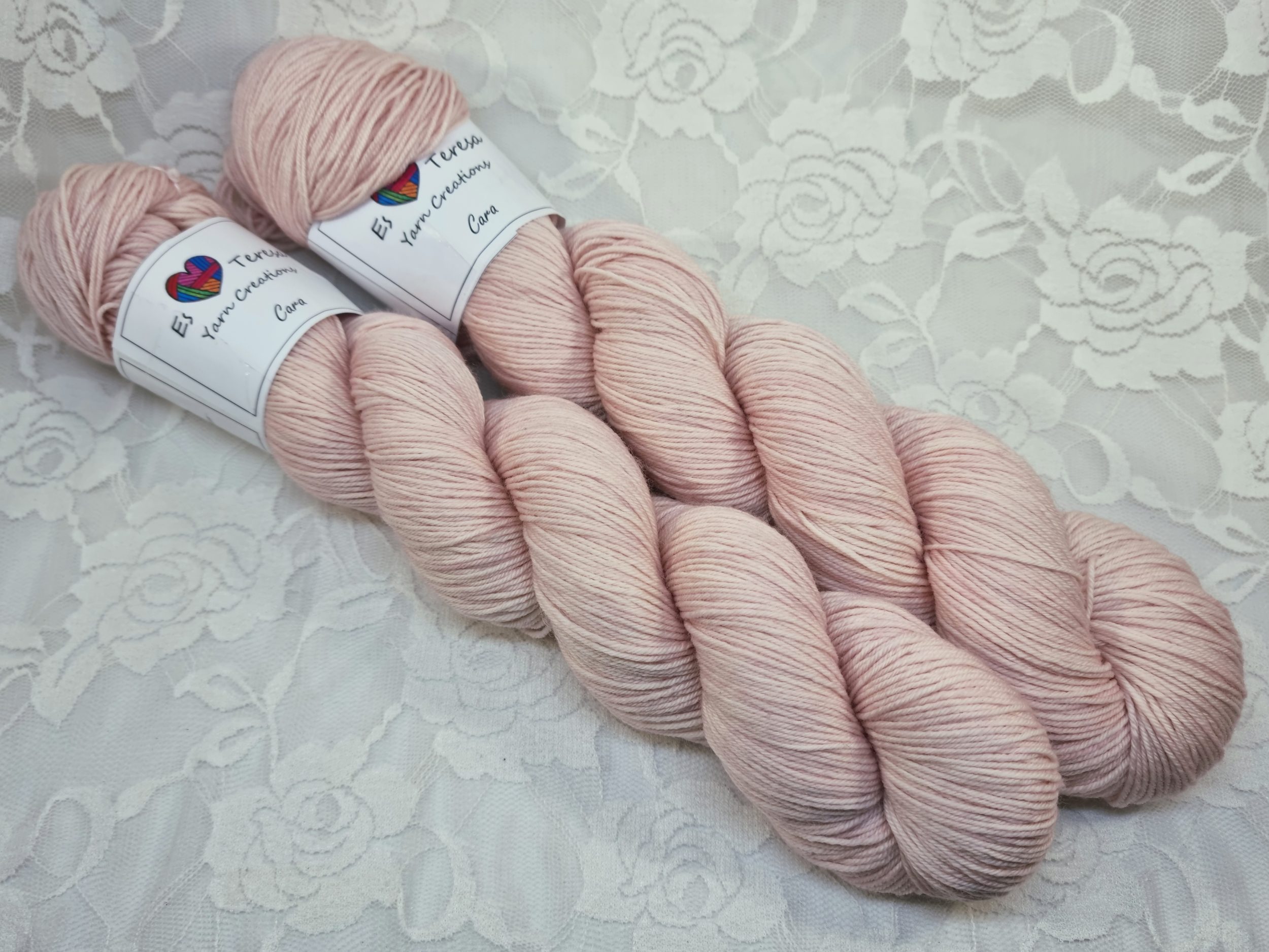 Each 100g skein of 4 ply sock/fingering weight yarn is about 400m.