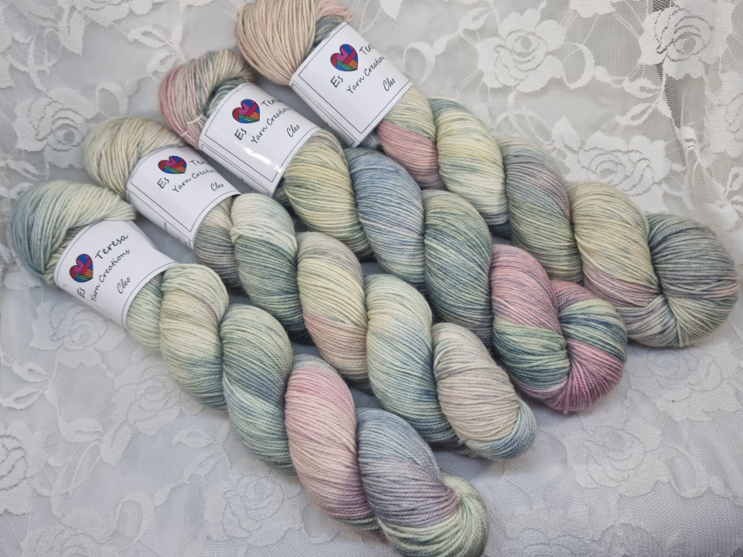 Each 100g skein of 3 ply sock/fingering weight yarn is about 350m.