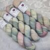 Each 100g skein of 3 ply sock/fingering weight yarn is about 350m.