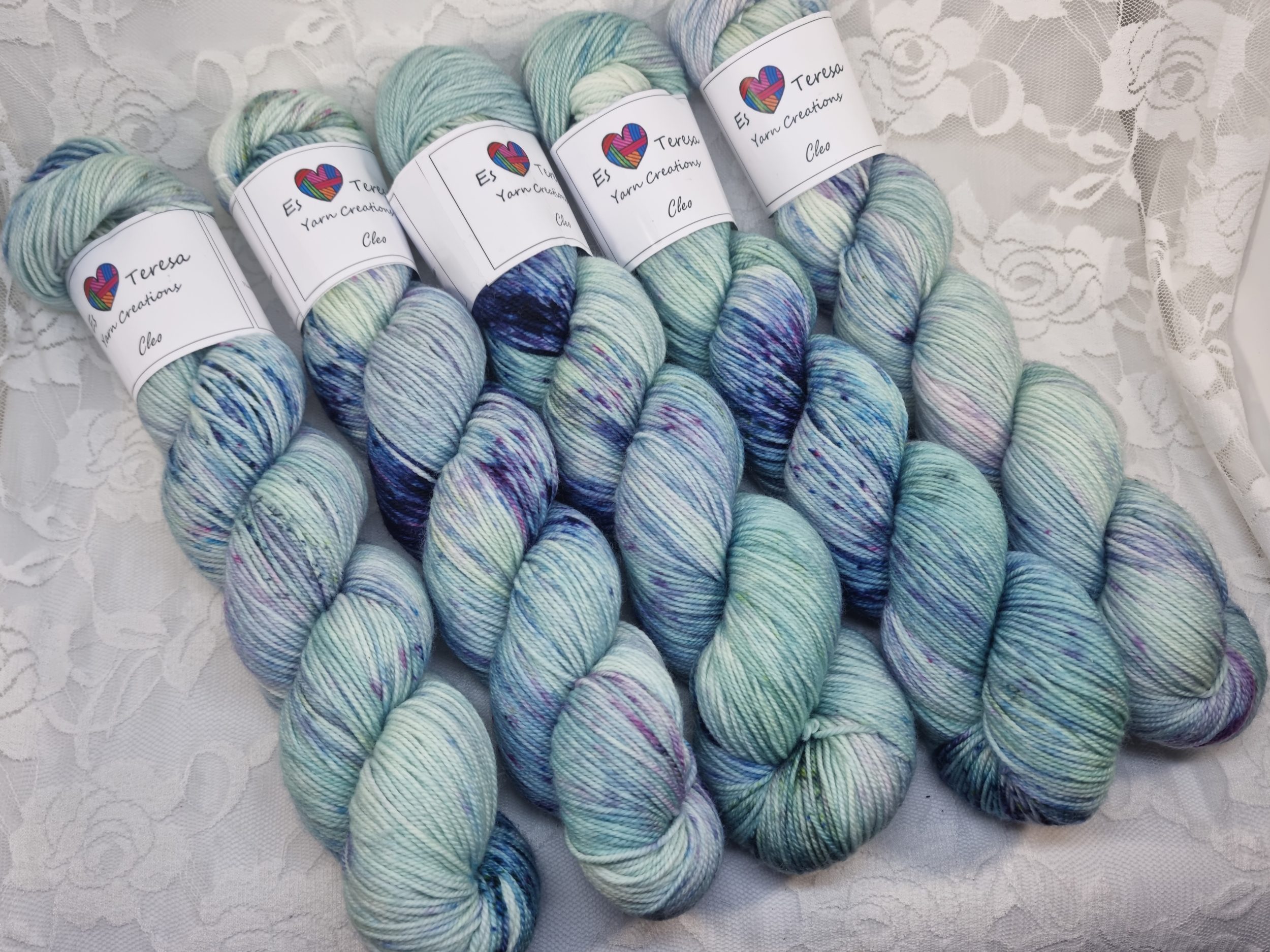 Each 100g skein of 3 ply sock/fingering weight yarn is about 350m.