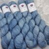 Each 100g skein of single ply sock/fingering weight yarn is about 350m.