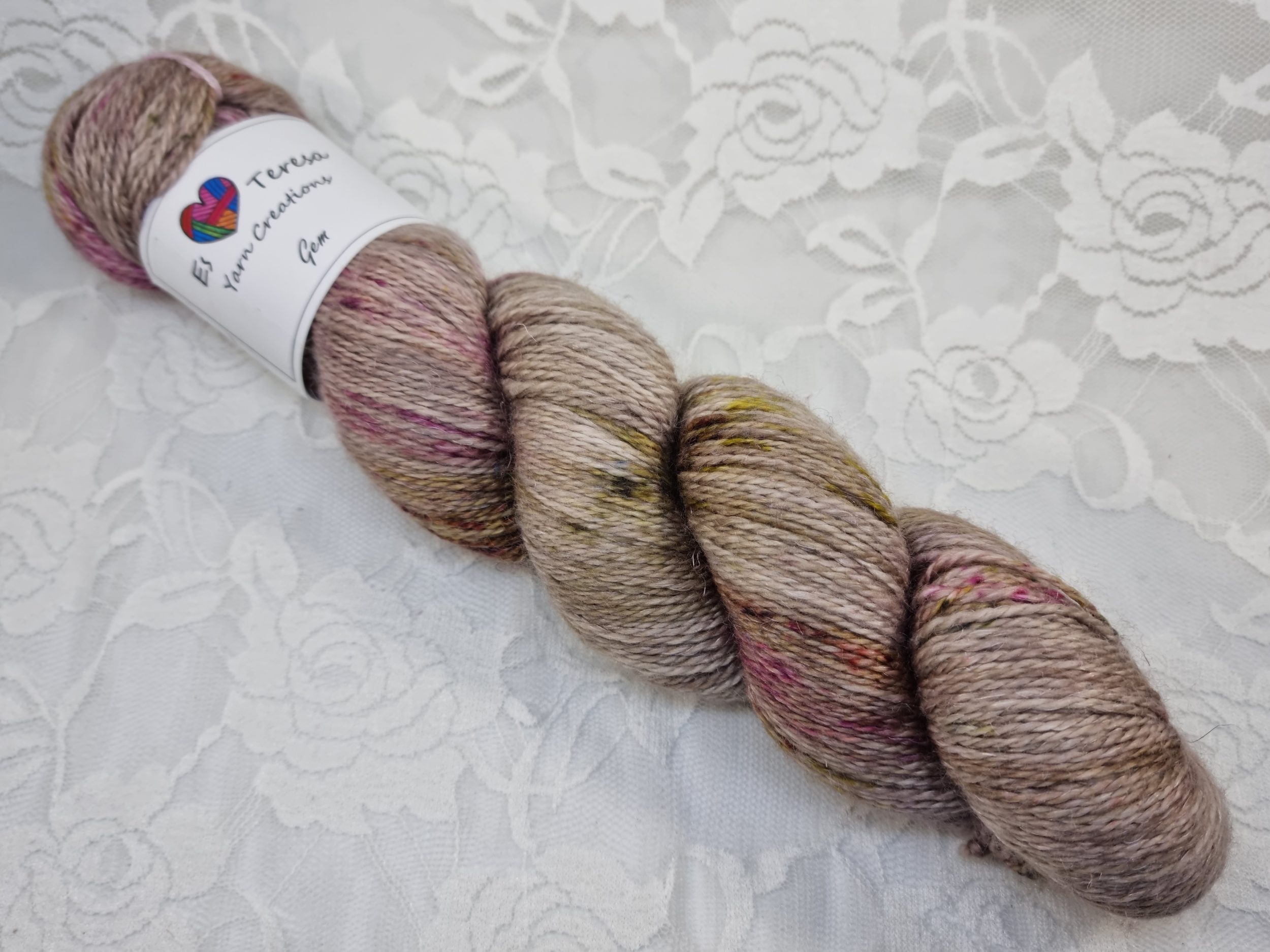 Each 100g skein of 2 ply sock/fingering weight yarn is about 375m.