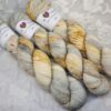 Each 100g skein of single ply sock/fingering weight yarn is about 350m.