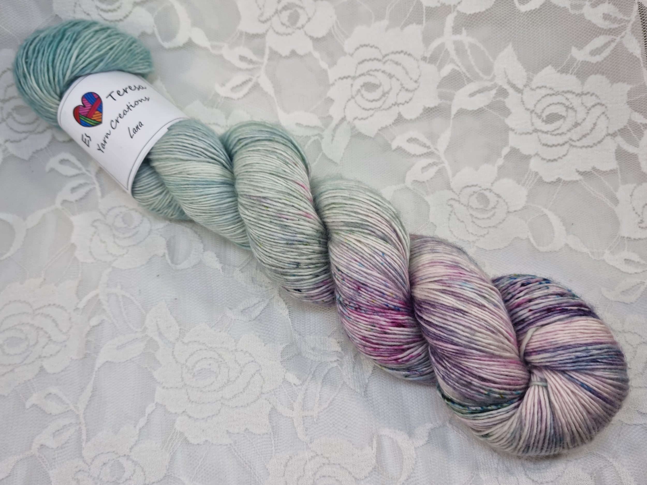 Each 100g skein of single ply sock/fingering weight yarn is about 350m.