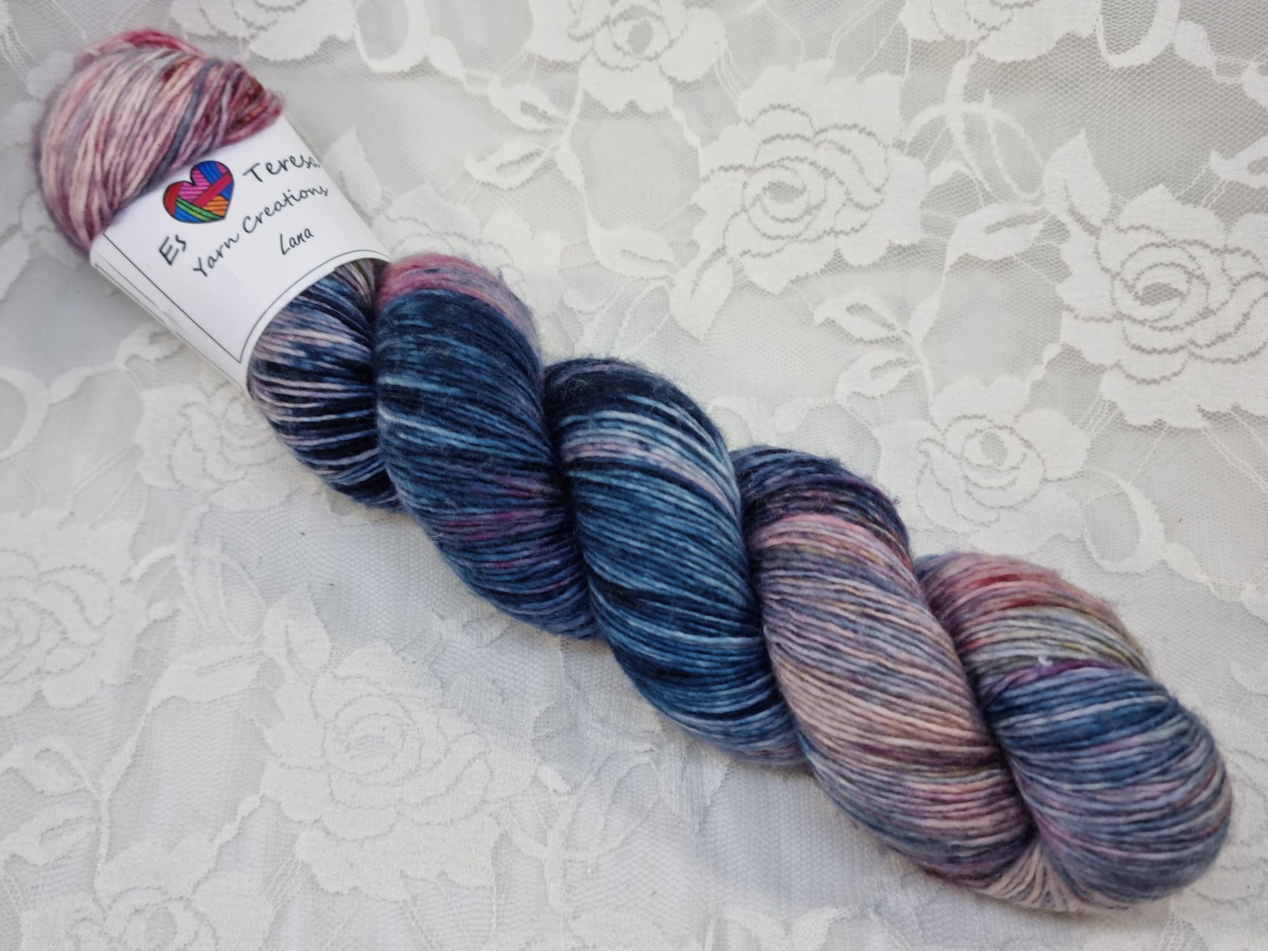 Each 100g skein of single ply sock/fingering weight yarn is about 350m.