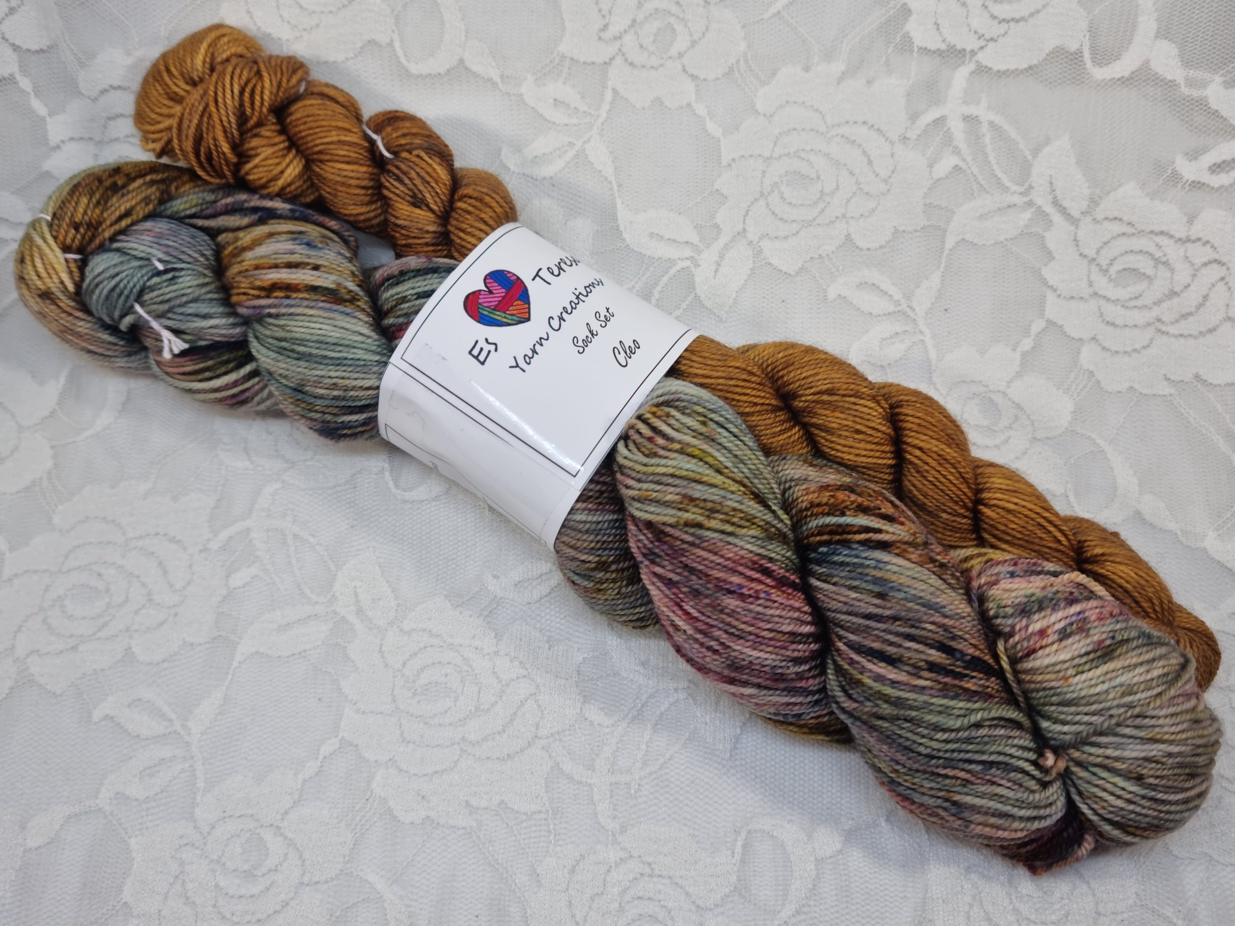 This sock set contains 1 x 80g skein and 1 x 30g skein (in a contrasting colour for heels, cuffs and toes) = 110g in total.