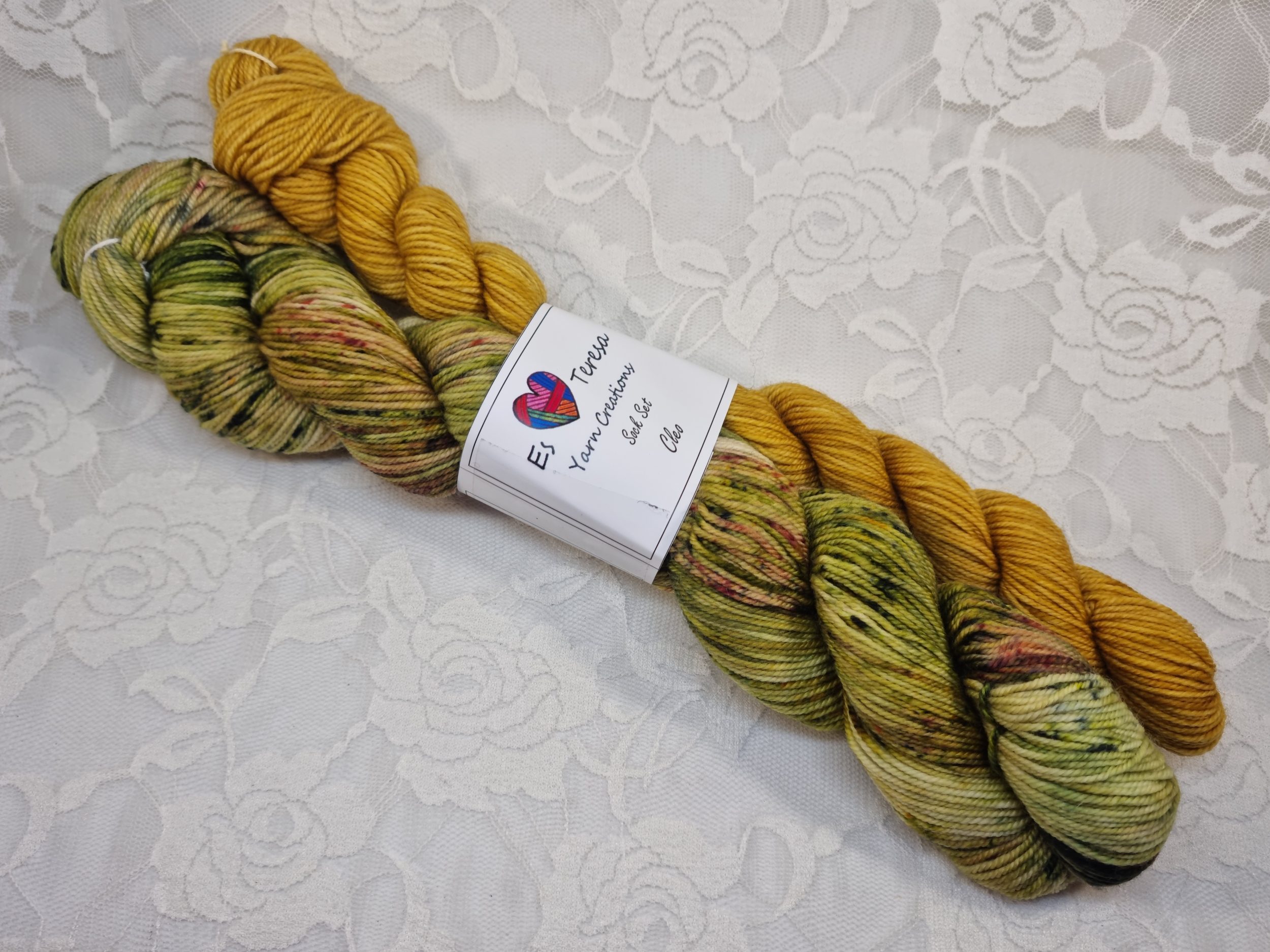 This sock set contains 1 x 80g skein and 1 x 30g skein (in a contrasting colour for heels, cuffs and toes) = 110g in total.
