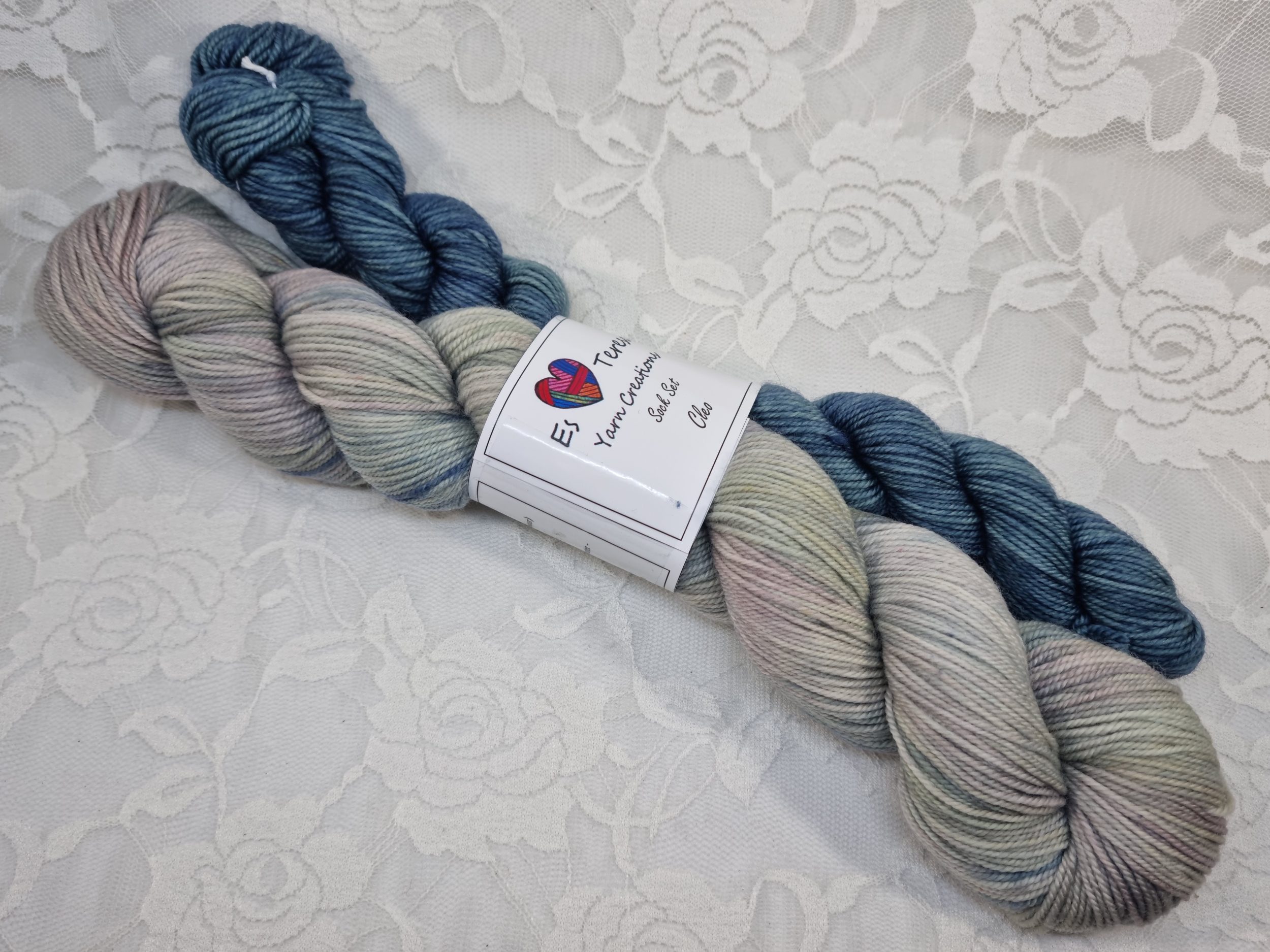 This sock set contains 1 x 80g skein and 1 x 30g skein (in a contrasting colour for heels, cuffs and toes) = 110g in total.