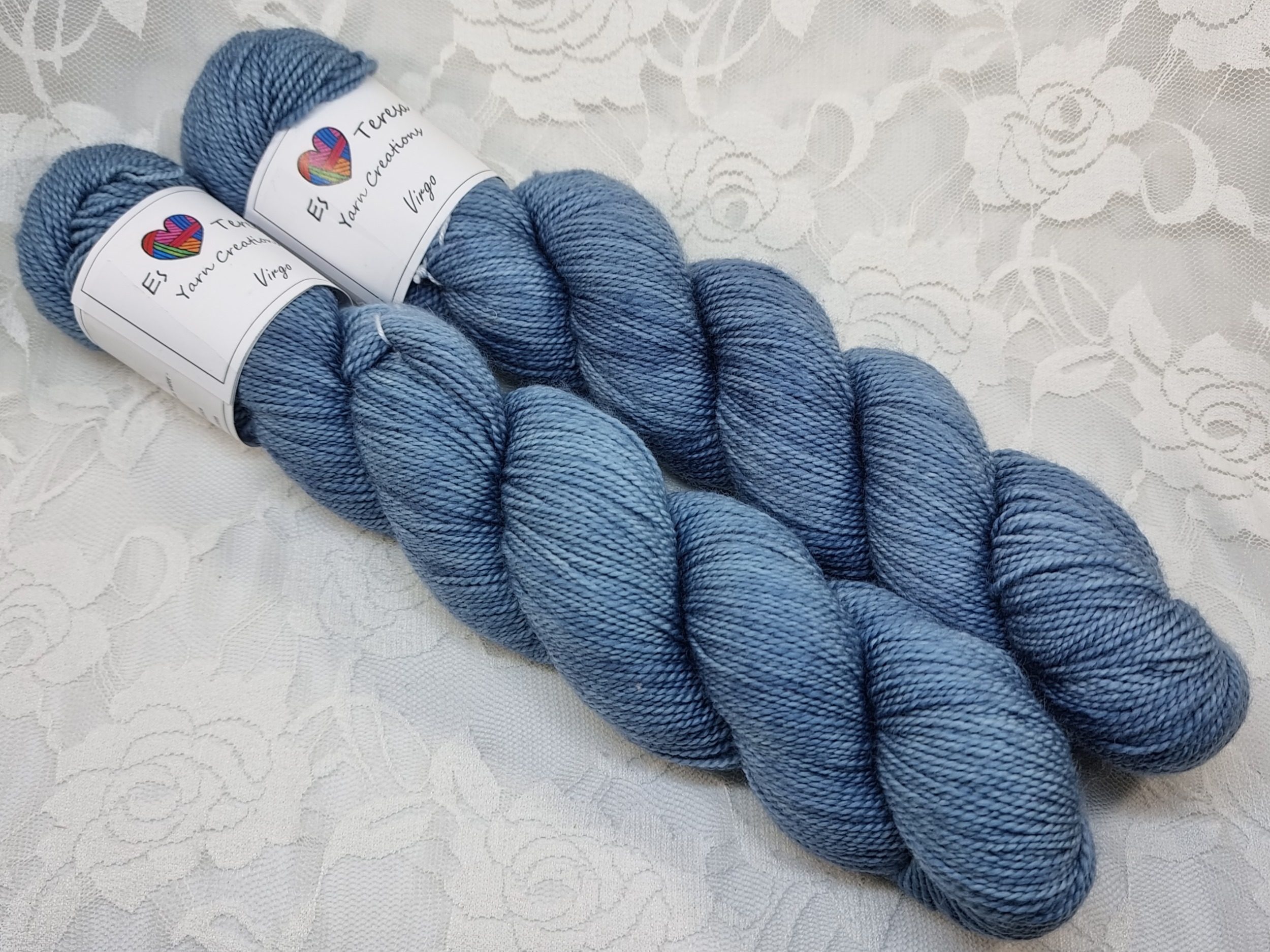 Each 100g skein of 2 ply sock/fingering weight yarn is about 300m.