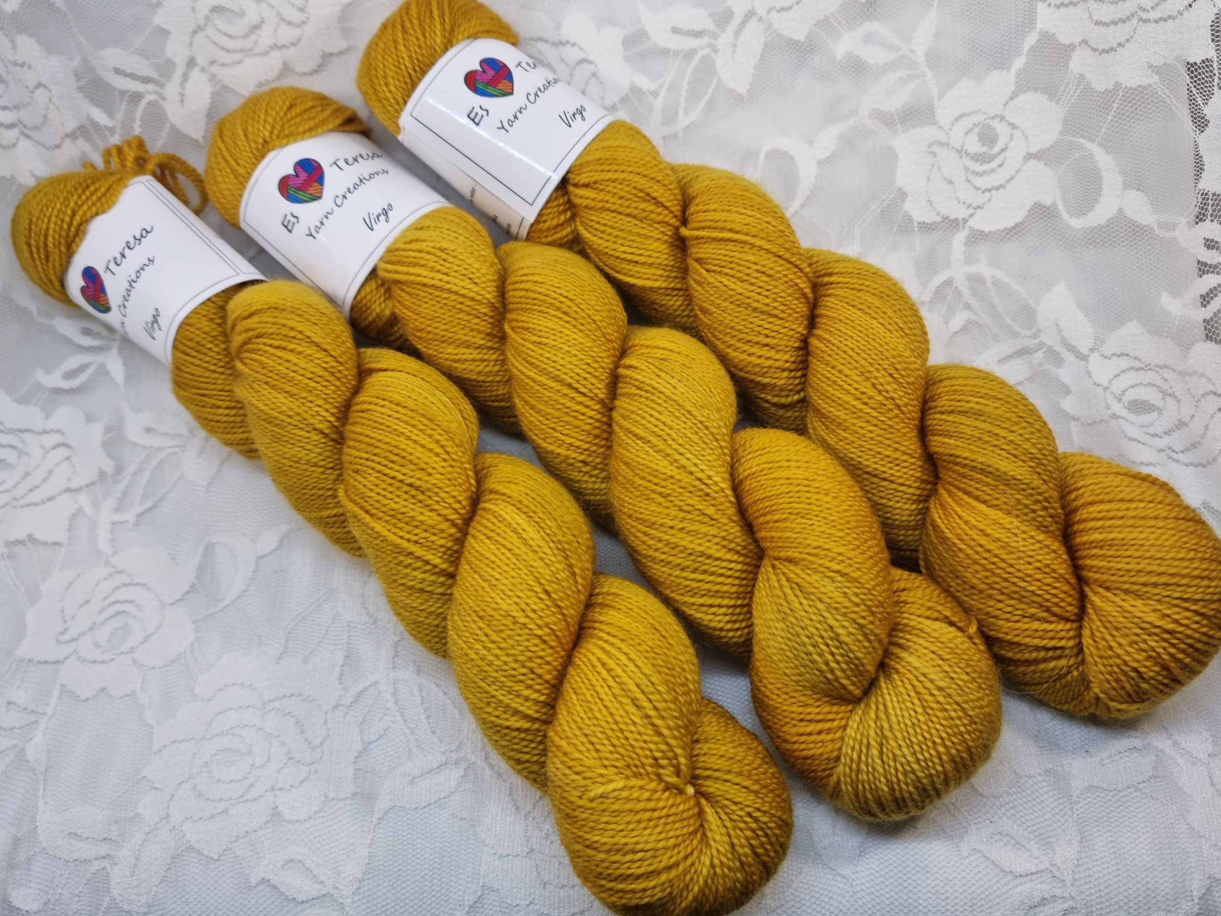 Each 100g skein of 2 ply sock/fingering weight yarn is about 300m.