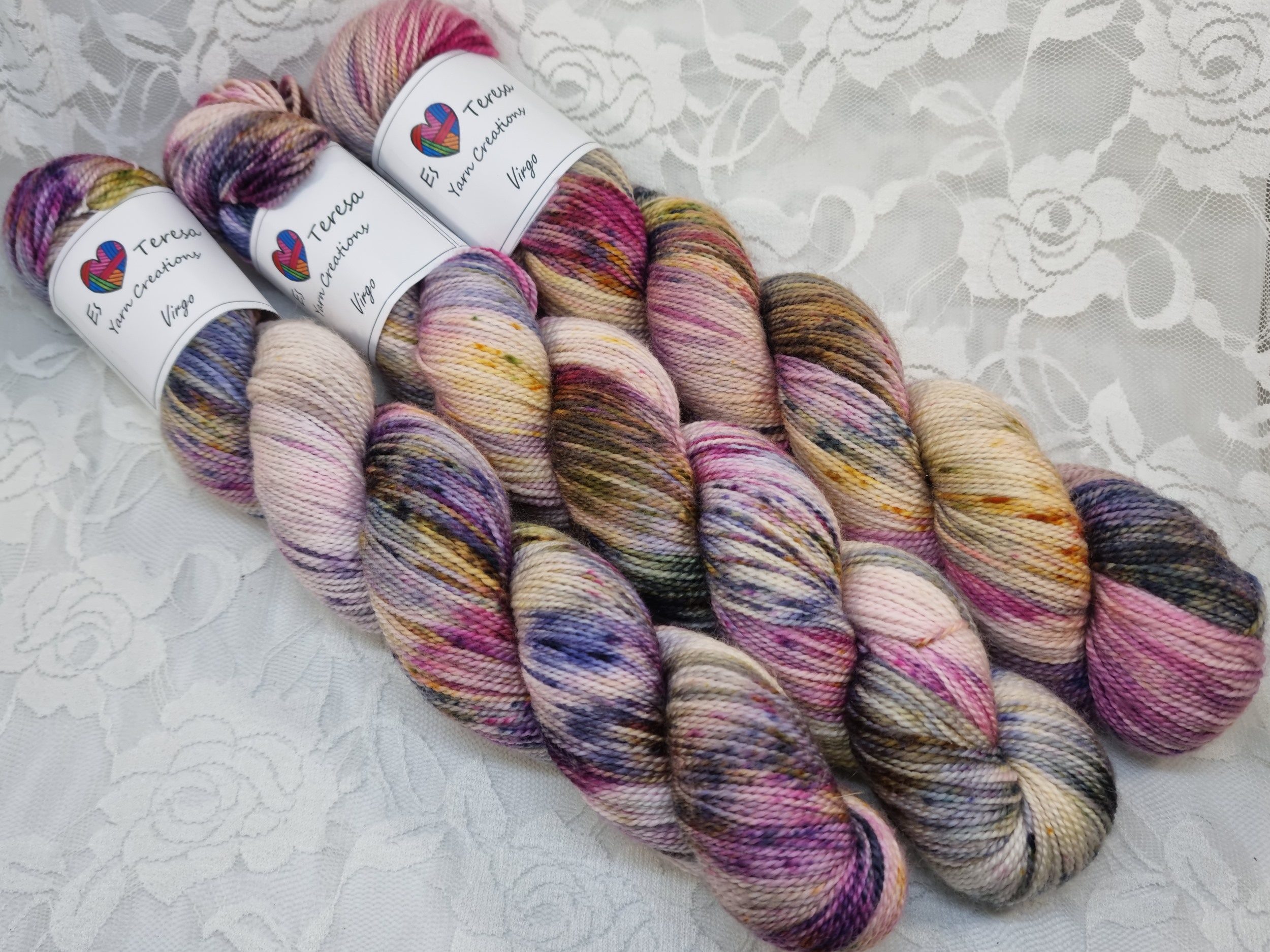 Each 100g skein of 2 ply sock/fingering weight yarn is about 300m.