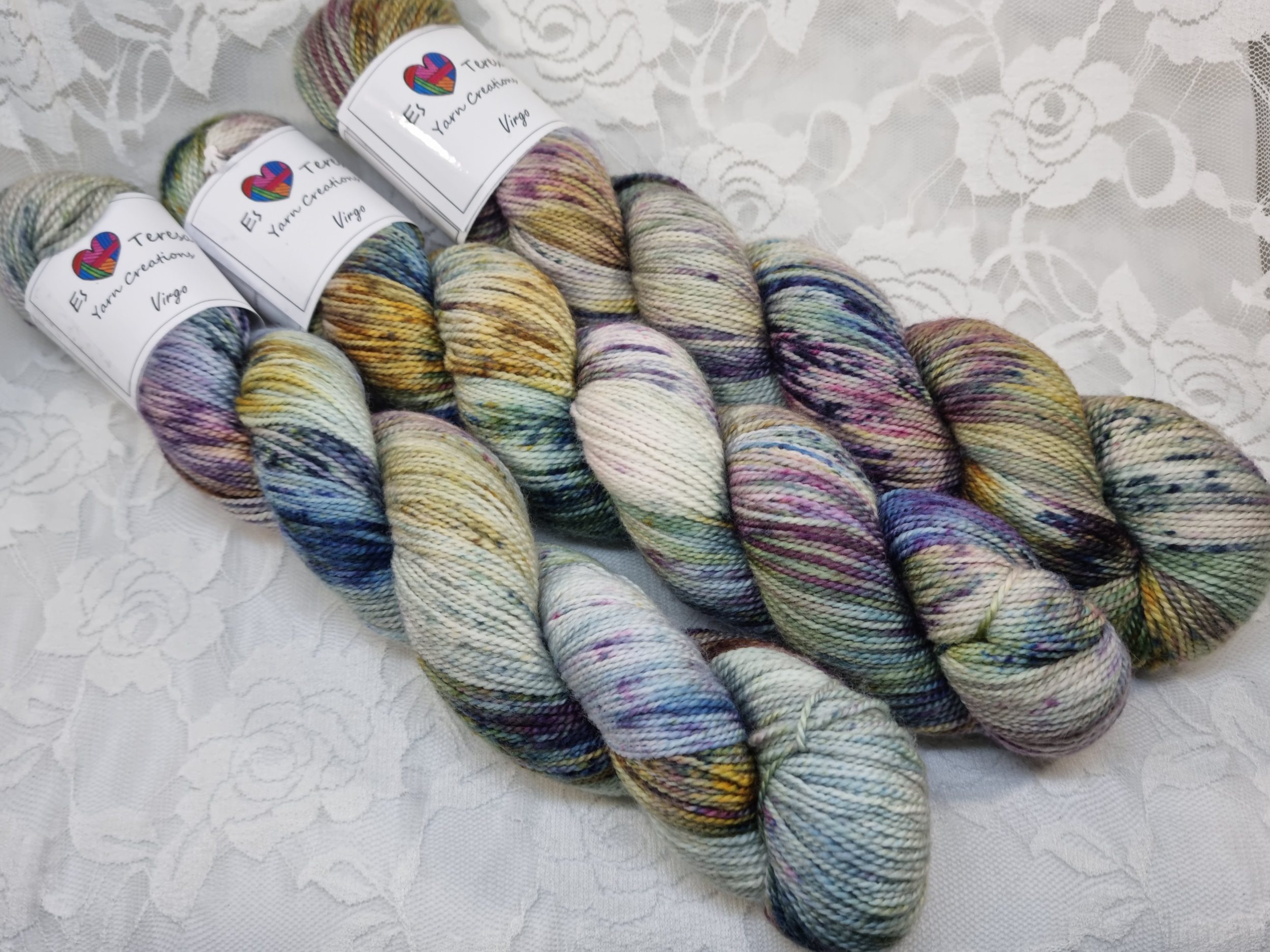Each 100g skein of 2 ply sock/fingering weight yarn is about 300m.
