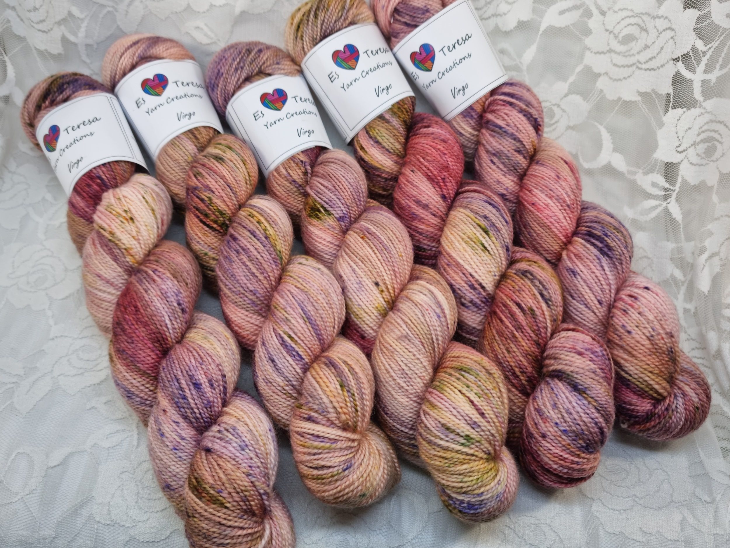 Each 100g skein of 2 ply sock/fingering weight yarn is about 300m.